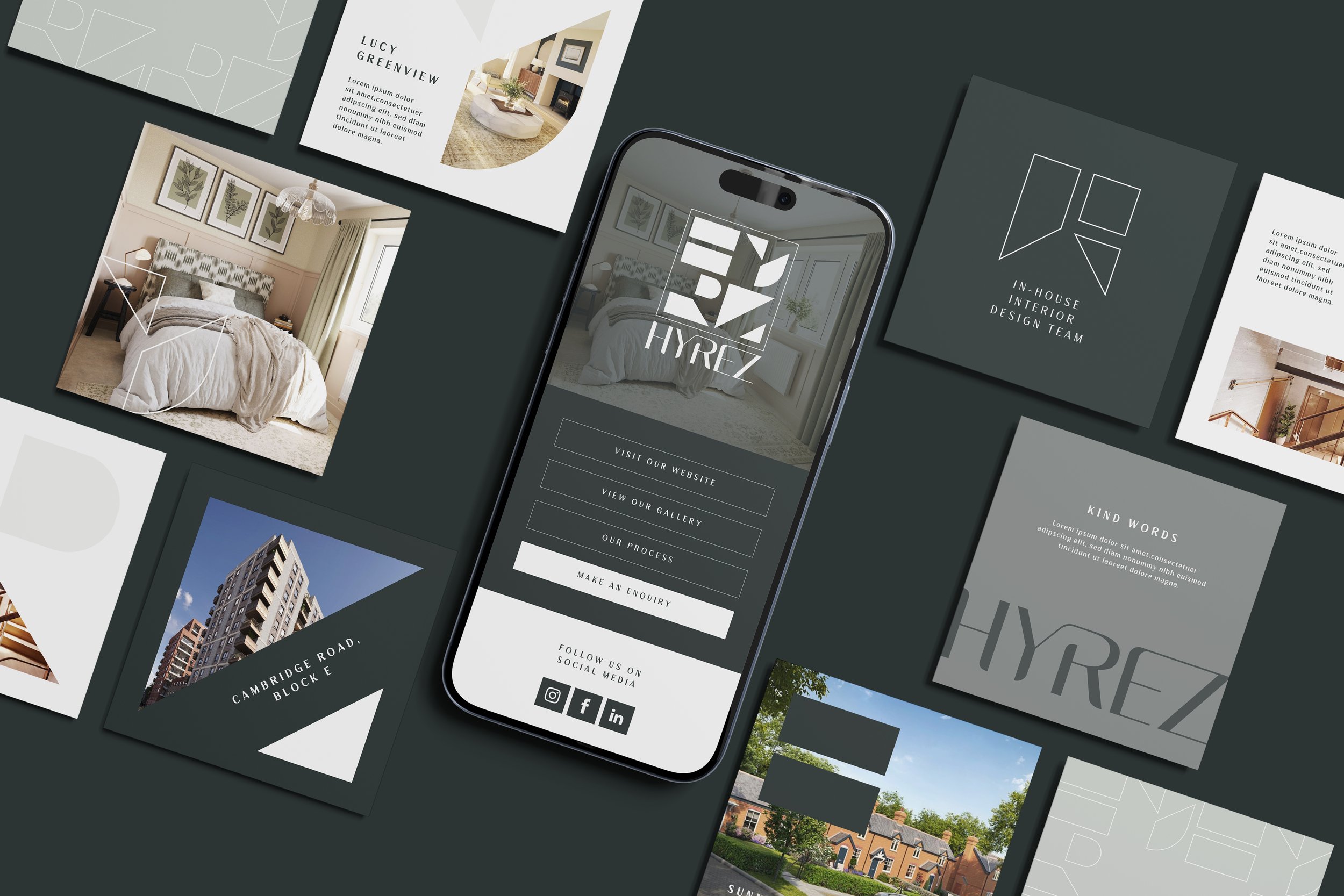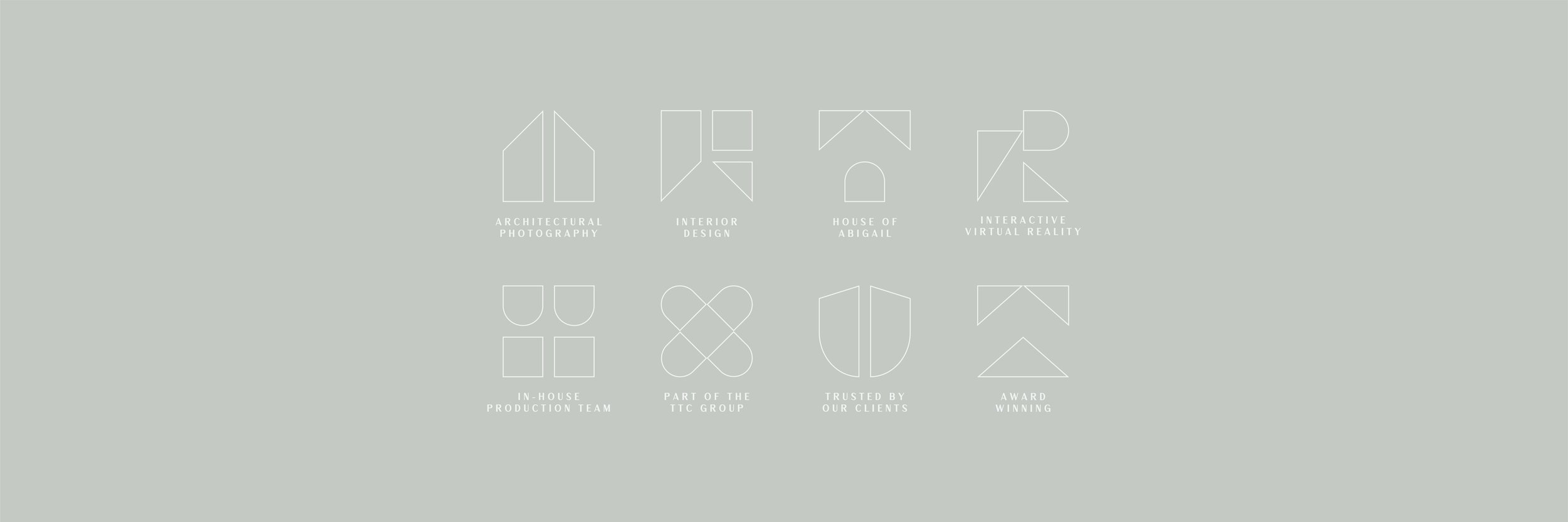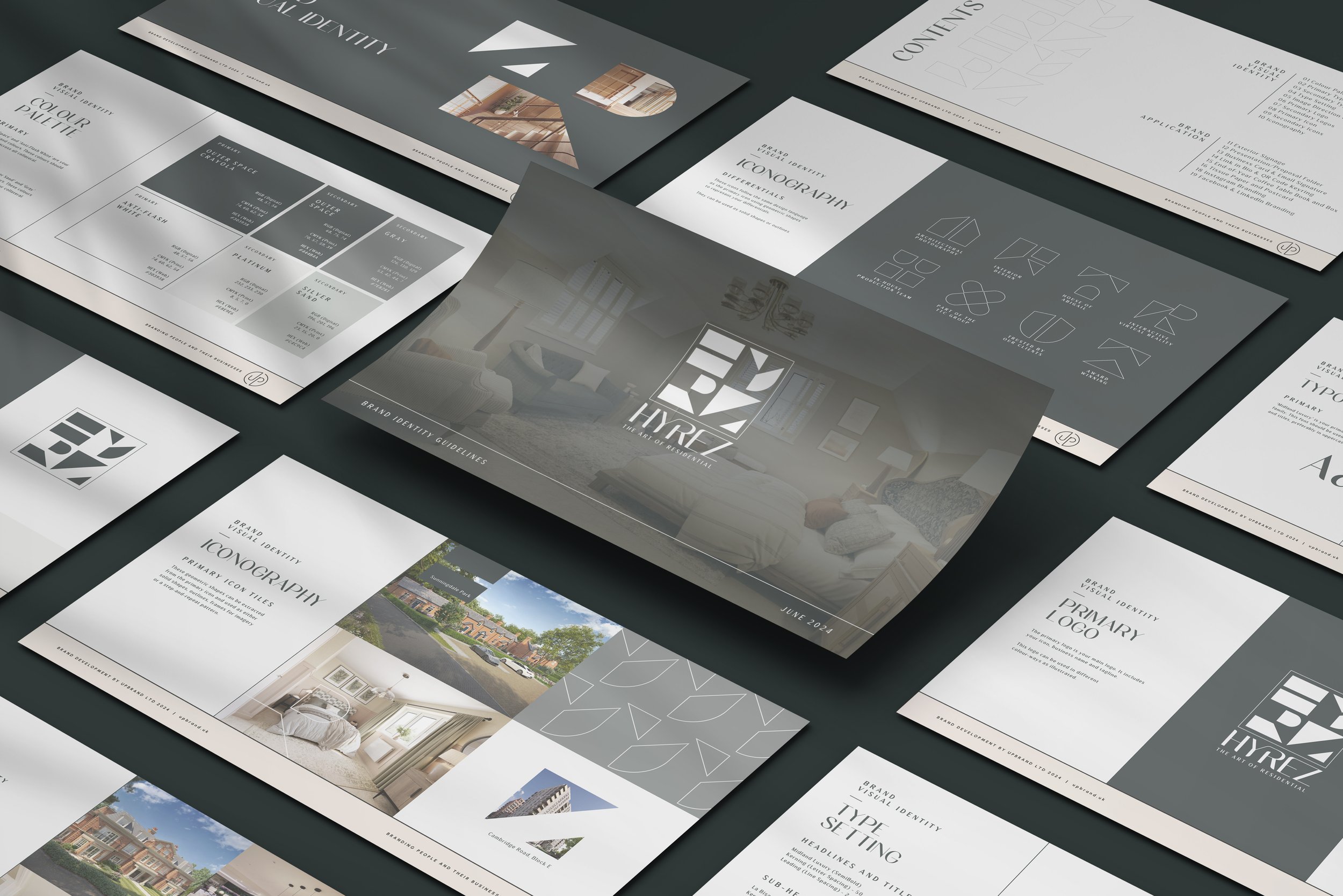 The icon system was constructed from the letterforms themselves, developed into a grid where negative space creates a network of four modular shapes. These elements can be separated, or joined to form a geometric icon mark, and framed to feel like a piece of artwork hung on a wall, tying into the tagline - ‘the art of residential’.